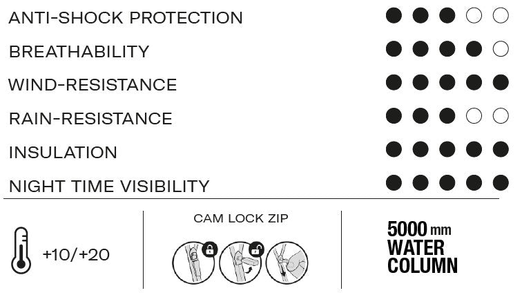Ideal to protect you from the wind whenever you need it. Made of the Grimpeur 2 layer fabric with membrane for the best protection of your core in cold windy weather