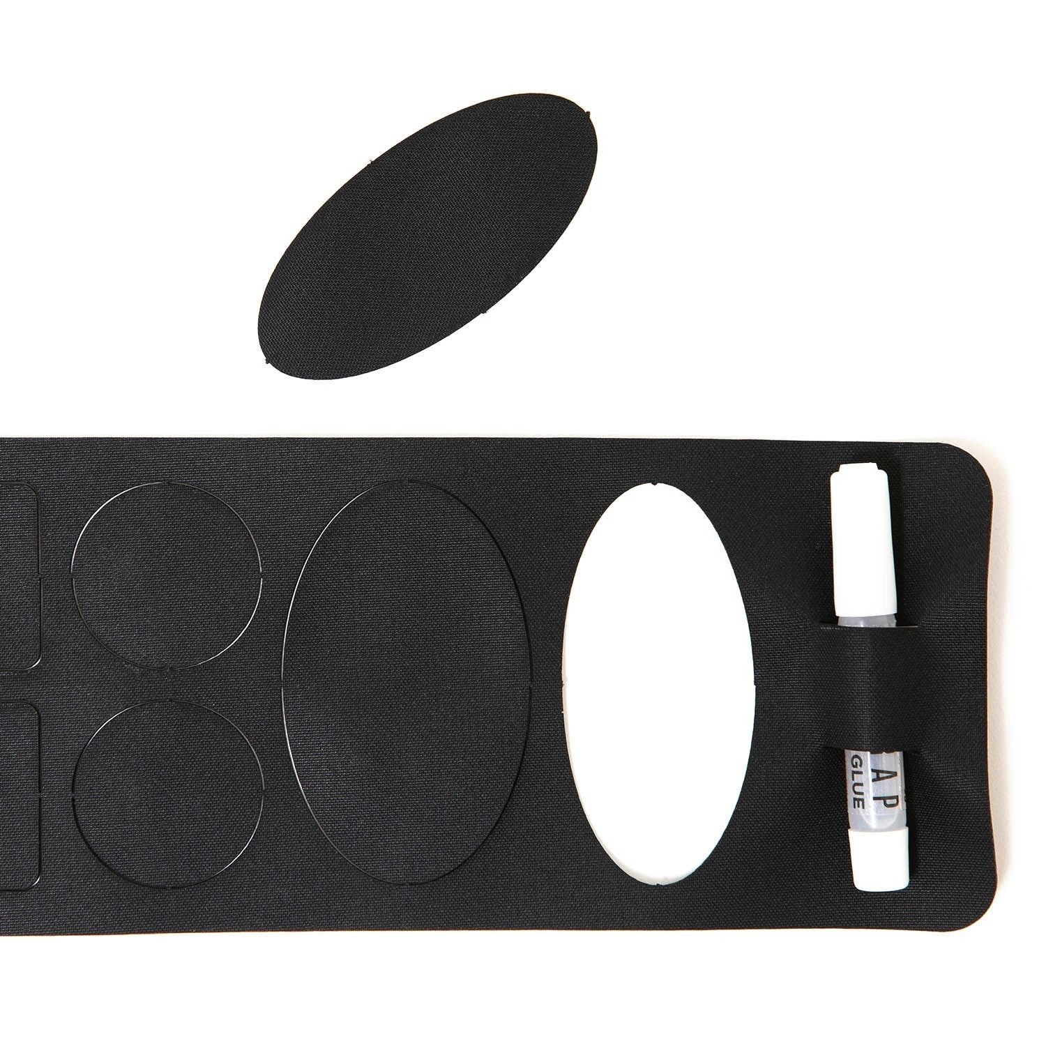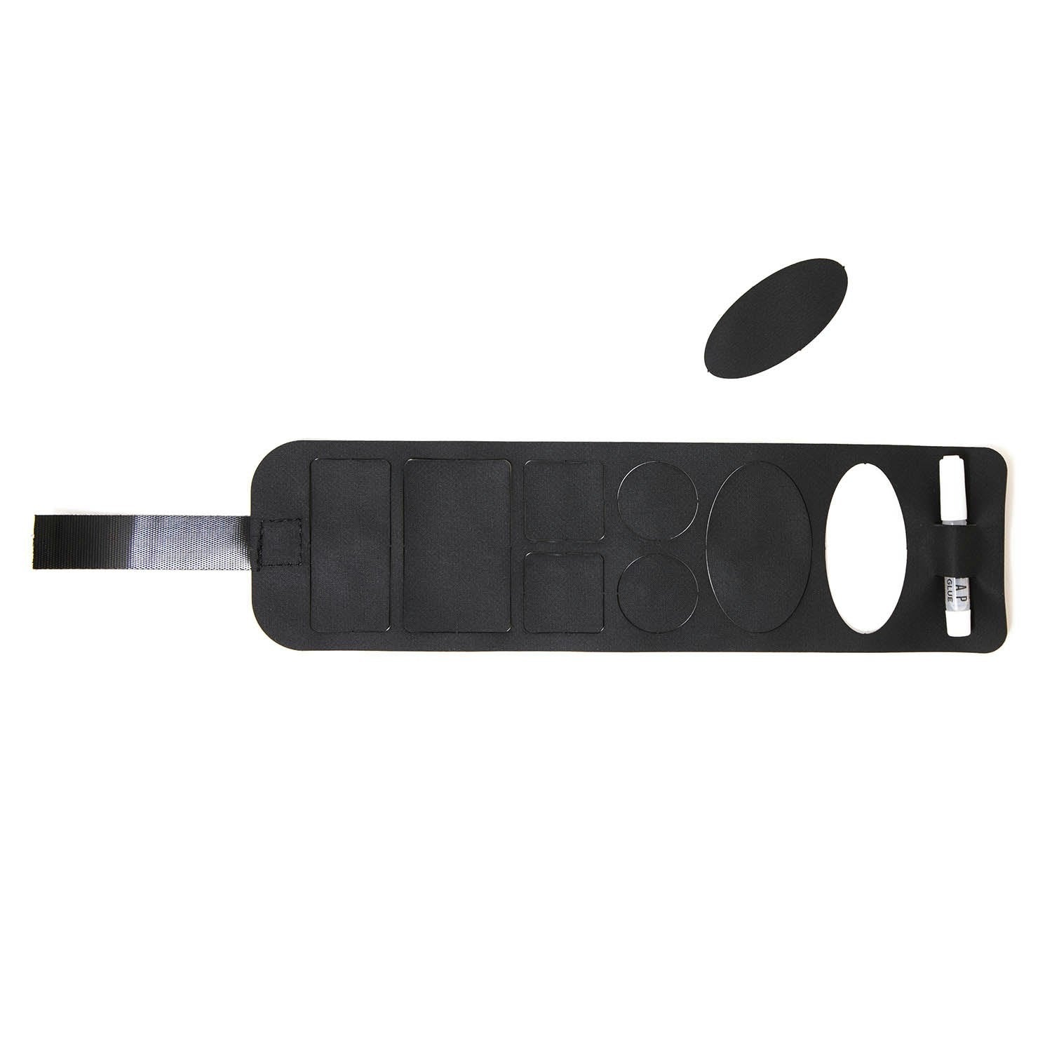 A tube of glue is included to handle tough repairs, and the compact kit is secured with a double-sided Velcro strap, making it easy to carry. A simple yet effective tool to keep you rolling.
