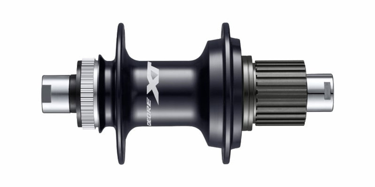The XT Deore M-8010 Hub accommodates a centerlock disc brake design and features an oversized axle for increased torsional stiffness and quick-response power transfer. It also includes high quality sealing and angular contact bearings for a long life, as well as smooth, friction-free functionality. The Shimano freehub body is compatible with Shimano 12-speed Micro Spline cassettes, features lightning fast engagement and effortlessly delivers the all-weather durability and reliable performance you've come to expect from Shimano's quality gear.. Deore XT M8100 Series