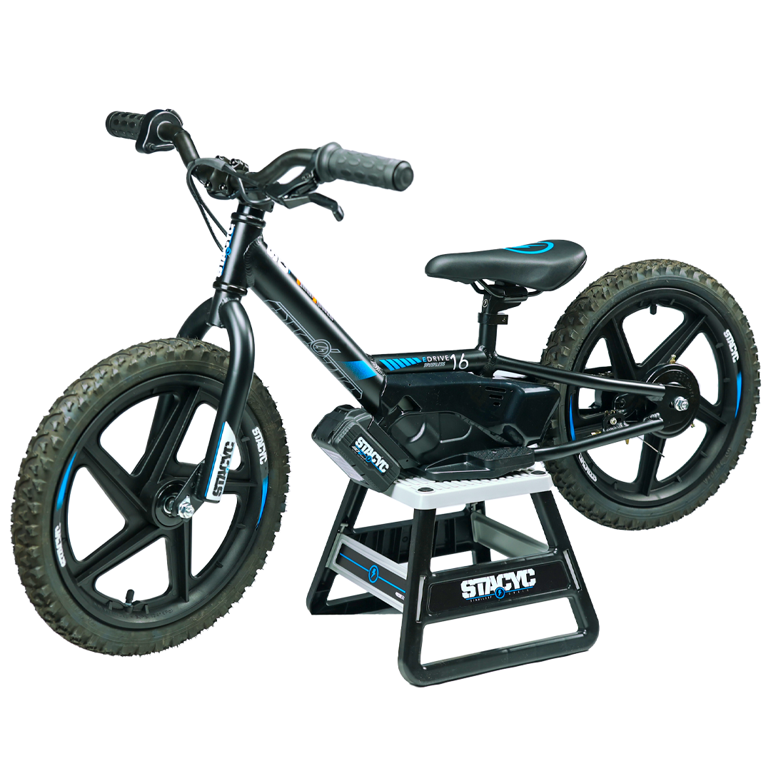 • Moto-style stand to keep STACYC Electric Balance Bikes off the ground