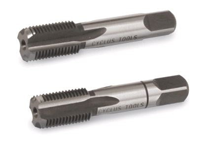 a tap for the left pedal thread (milled ring below the tap holder) and a tap for the right pedal thread (no milled ring).