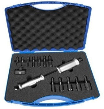 CYCLUS TOOLS universal ball bearing extractor set with exchange weight and storage case.