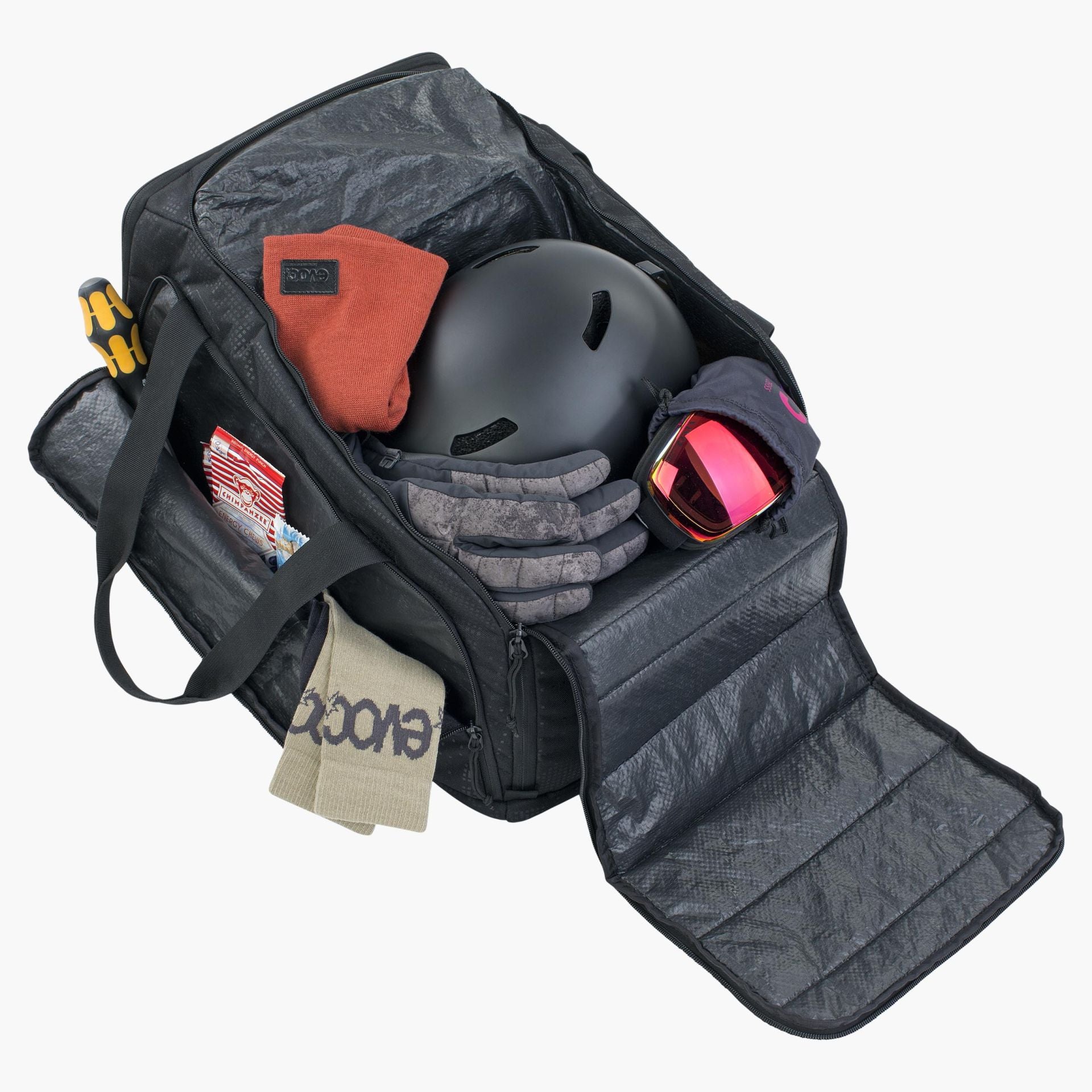You can carry loose equipment safely in this durable bag, whether it’s for snow or bike adventures. In the GEAR BAG, shoes are stowed separately from goggles and other equipment and you can access everything easily.