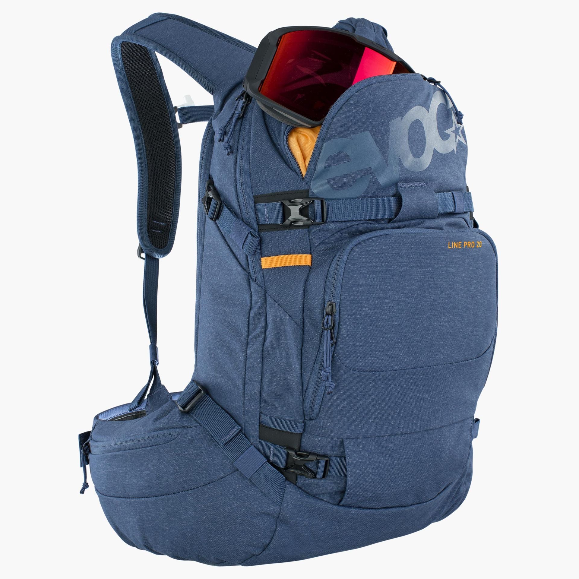 This touring backpack with freeride capabilities provides the highest possible degree of spinal protection in a crash thanks to the LITESHIELD PLUS protection technology. When ascending, the LINE PRO unburdens the back with its well-balanced load distribution to the shoulders and hips whereas it sits firmly in place while descending. The main compartment can be opened completely, hereby offering full access without having to remove skis or board from the backpack.