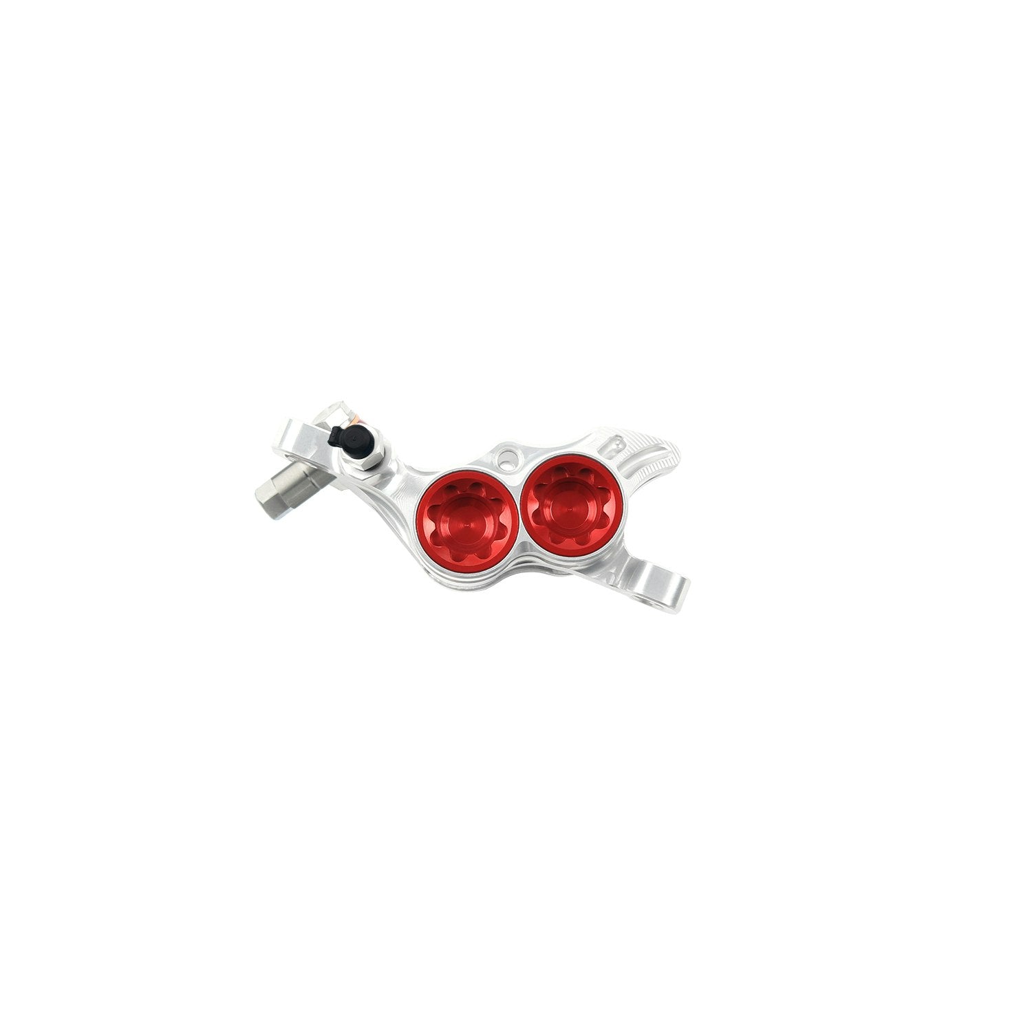 Featuring an innovative design, the improved E4 caliper employs hybrid-style stainless steel pistons coupled with a phenolic insert, facilitating smoother movement and less frequent maintenance. Furthermore, it retains the ability to handle elevated temperatures without heat transfer under intense usage.