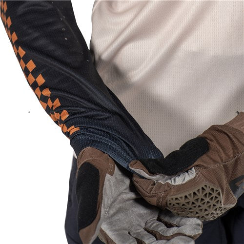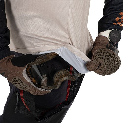 This long sleeve jersey works well even on warmer days, courtesy of the IceYarn fabric - with a naturally cooling effect - and with laser cut ventilation holes. The sportive, regular fit, ensures that slimline protection gear will fit underneath the jersey. A microfiber goggle wiper sewn into the hem will make keeping your sunglasses clean quick and easy.