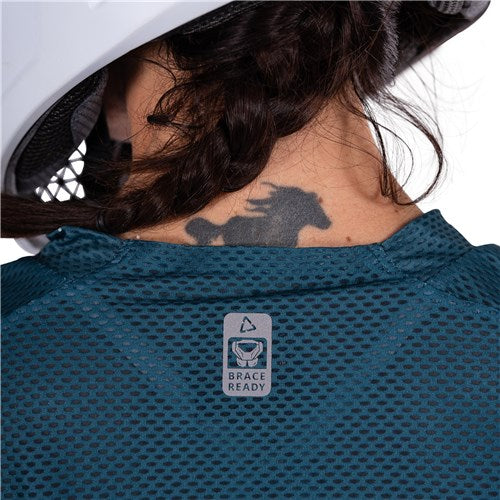 The tailored race fit stretch material can be worn with or without body armor and of course, is neck brace ready! The elbows of the jersey are reinforced with Brush Guards, an ultra-thin flex film that is feather-light and increases scratch and abrasion resistance properties.