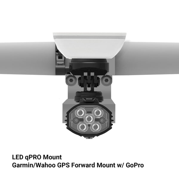 - LED qPro Mount compatibility: Mega Mount Small & Large, Flexi Stem Mount, Garmin/Wahoo GPS Forward Mount with GoPro