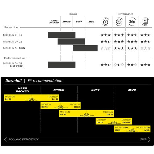 All of MICHELIN’s experience has gone into defining these latest mixes, allowing mountain bikers to obtain the optimal performance compromise between grip, efficiency and wear. Compound are produced in varying levels of shore hardness the lower the index value, the greater the gum softness; conversely, as the index value rises, the gum becomes harder.