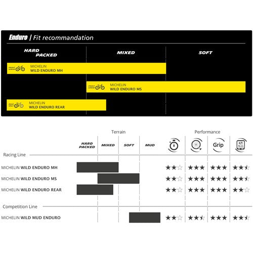 The most versatile Downhill tyre in the Michelin range. Excellent on soft and mixed terrain, it gives you a good level of performance on hard terrain.