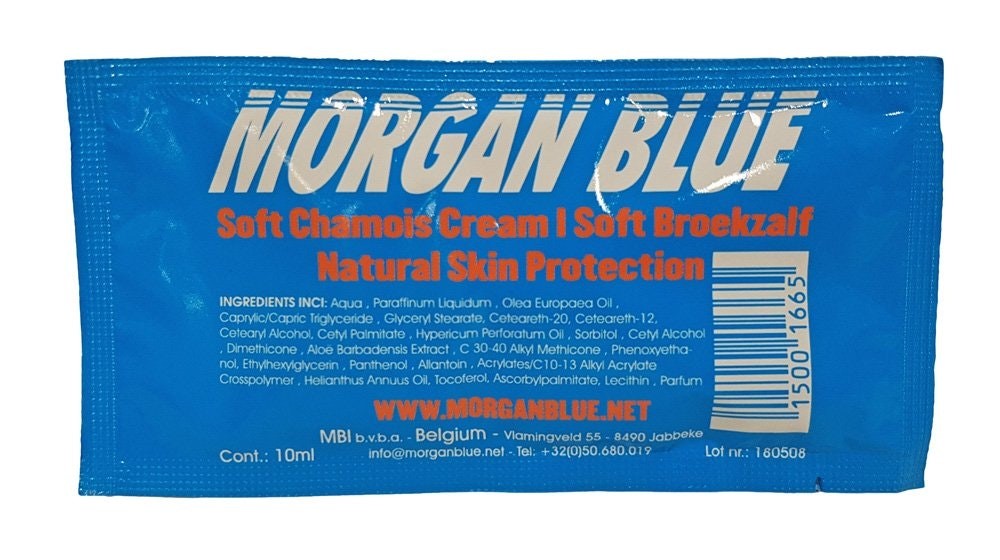 • Morgan Blue soft chamois cream in a small 10 ml. bag.