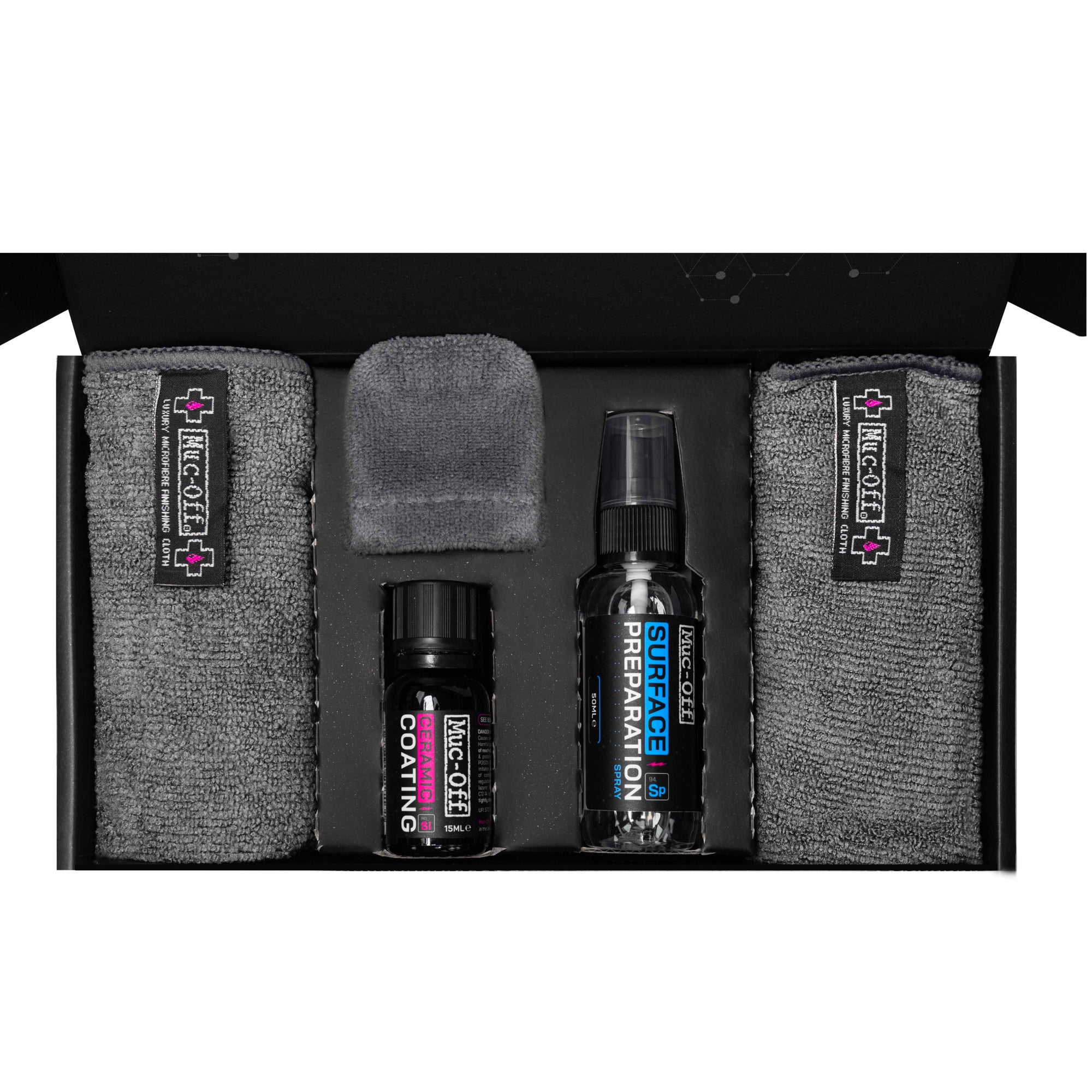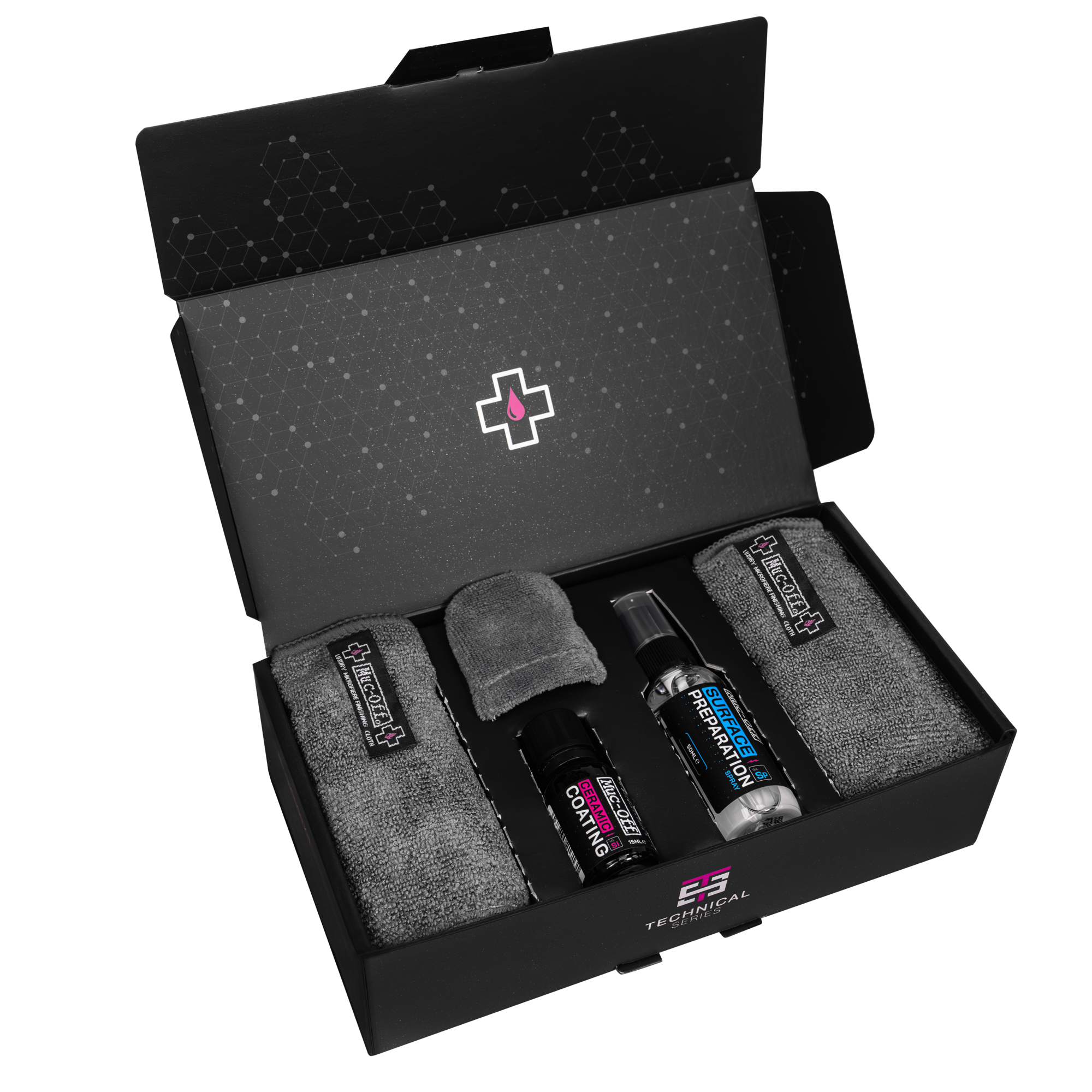 The Muc-Off Ceramic coating is a highly advanced, durable, silicon-infused protective layer that chemically bonds to your paintwork, producing a high-performance hydrophobic layer for maximum water and dirt shedding properties. It’s designed to keep your steed cleaner for longer, and much easier to clean and maintain. This is because the coating drastically reduces the surface tension, providing long term, year-round protection to your pride and joy, even in the harshest weather conditions. It also contains UV protection to help ensure your paint doesn’t fade in direct sunlight and can help reduce the risk of micro scratches.