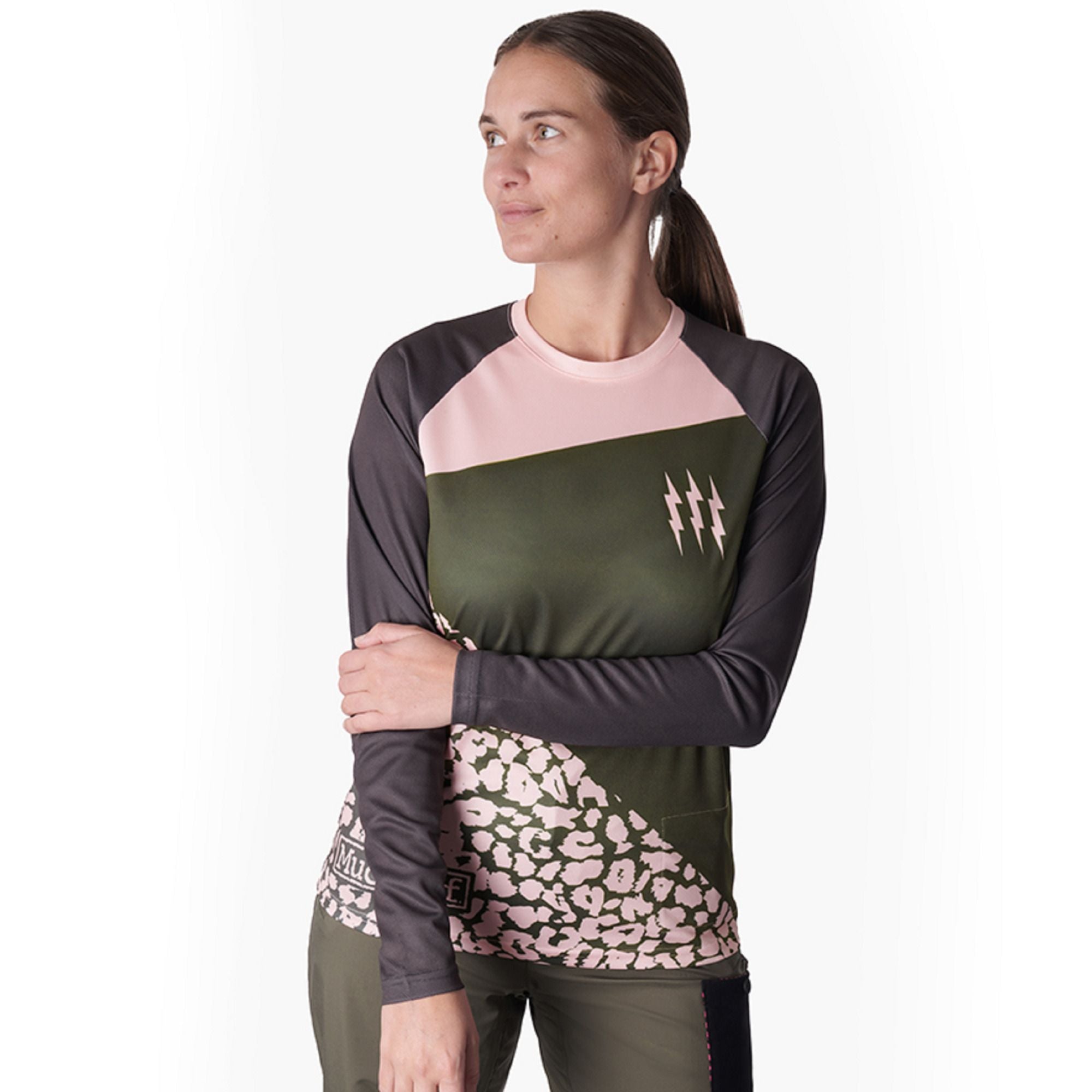 Muc-Off Womens Long Sleeve Riders Jersey Leopard - Green/Pink