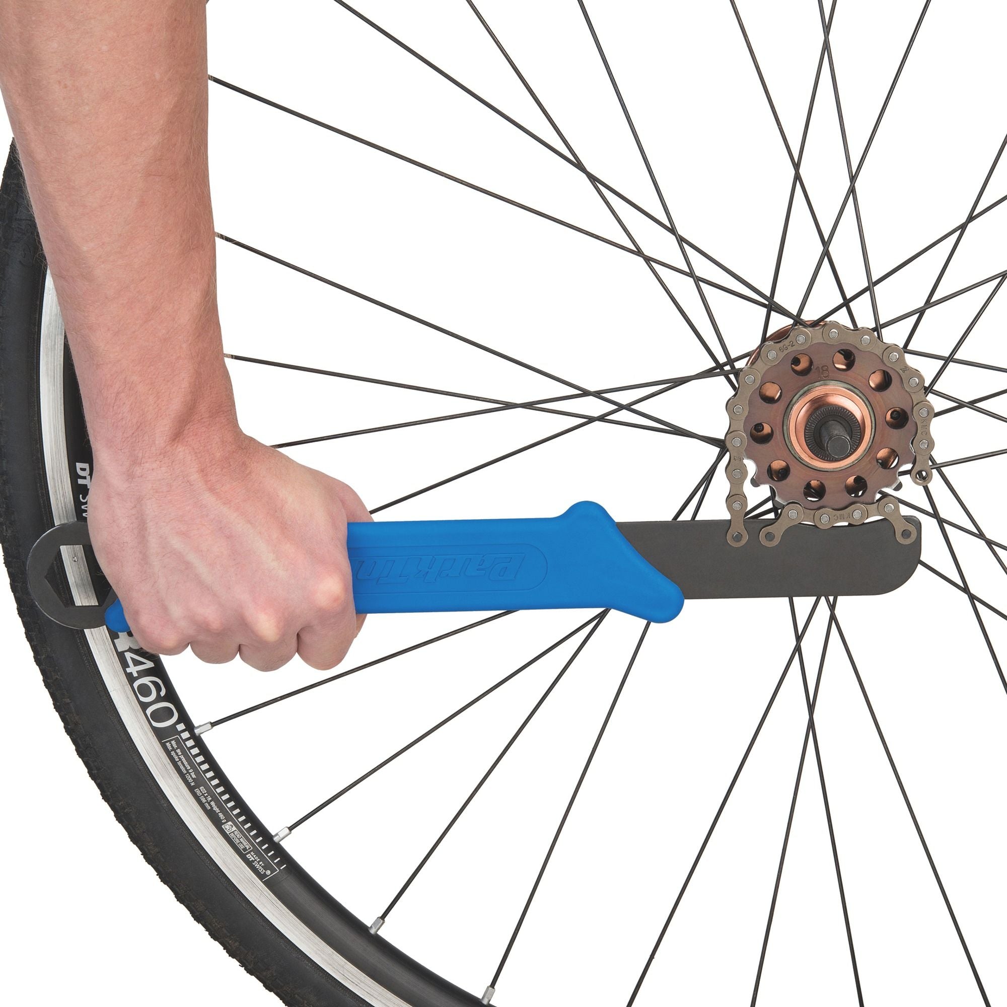 This combination chain whip and freewheel/lockring remover wrench is heat treated to prevent bending and flexing, with a molded handle for comfort.