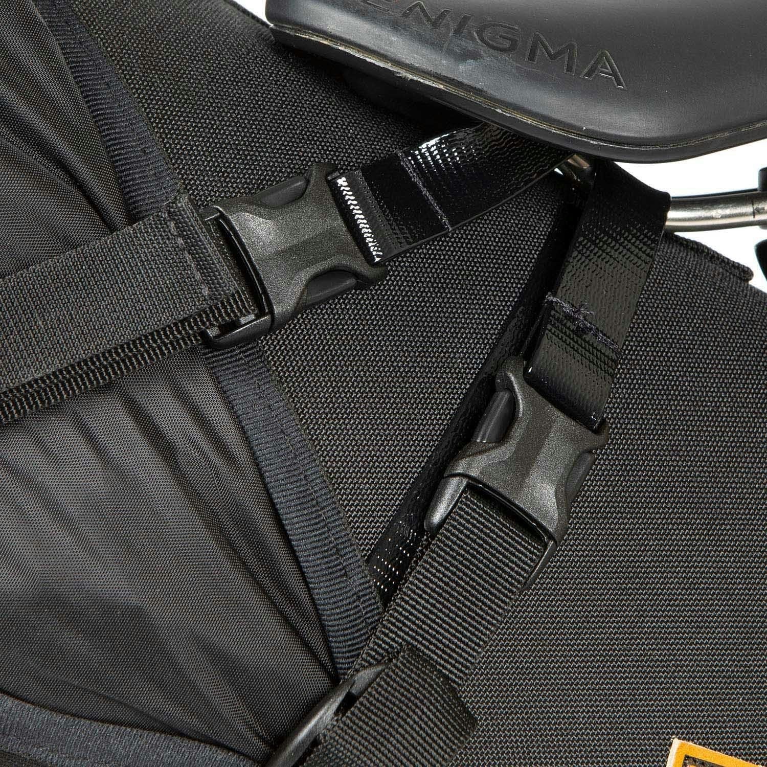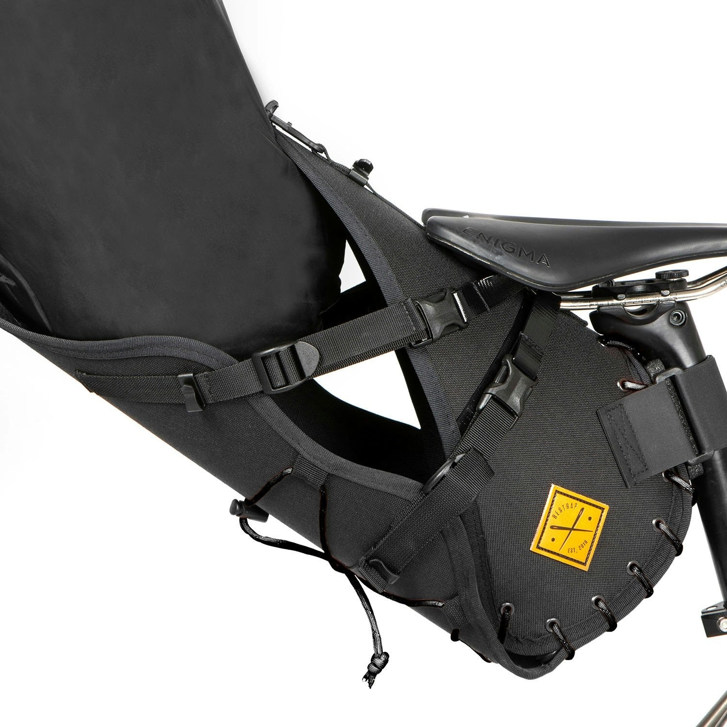 Perfect for bikepacking, touring, and commuting, our rackless saddle bag securely attaches to your seatpost in seconds, without the need for mounts or screws. The holster holds up to an 18-litre dry bag, fastened with a patented magnetic buckle that’s easy to adjust, even with gloves on.