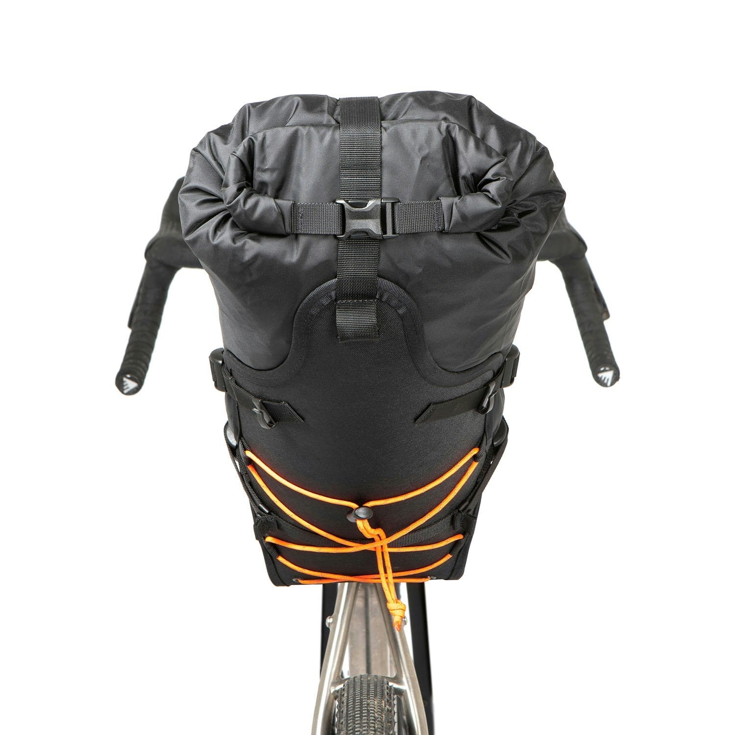 Perfect for bikepacking, touring, and commuting, our rackless saddle bag securely attaches to your seatpost in seconds, without the need for mounts or screws. The holster holds up to an 18-litre dry bag, fastened with a patented magnetic buckle that’s easy to adjust, even with gloves on.
