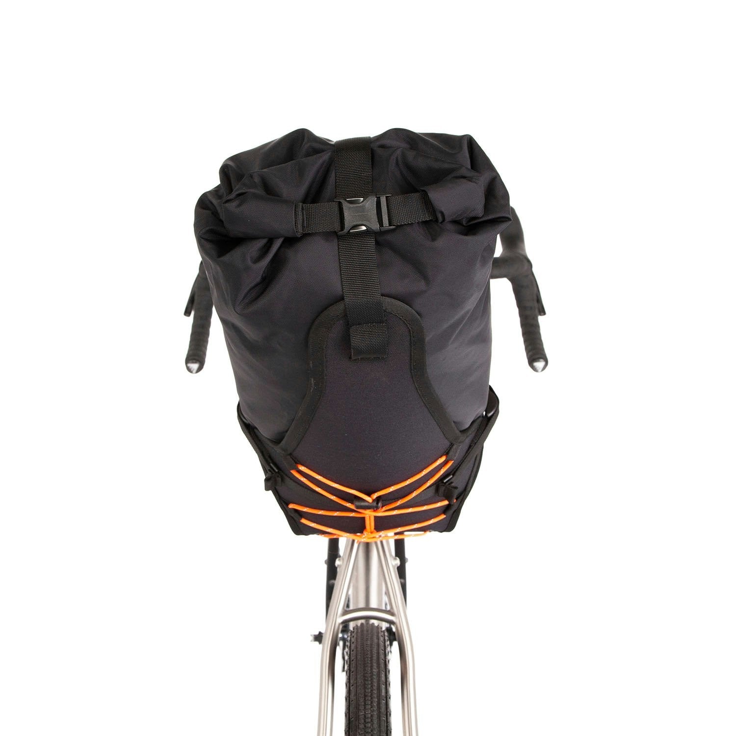 Designed for bikepacking, touring, and commuting, our rackless saddle bag attaches quickly and securely to your seatpost without the need for mounts or screws. The holster supports up to a 14-litre dry bag, held in place by a patented magnetic buckle that’s glove-friendly and easy to adjust.