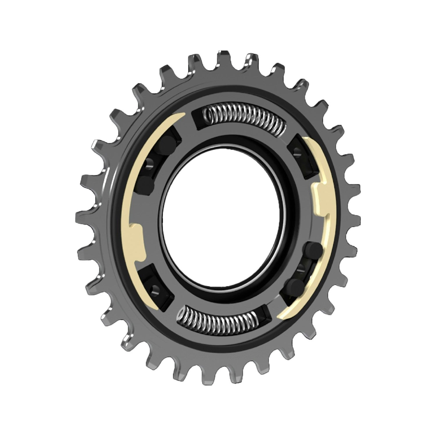 The Chain Damper reduces drivetrain feedback by absorbing chain energy spikes, keeping the rider in tune with suspension movements. It controls chain forces through a calculated angle of rotation.