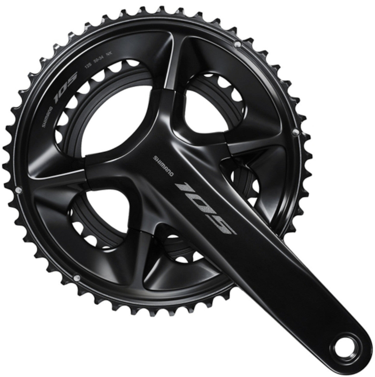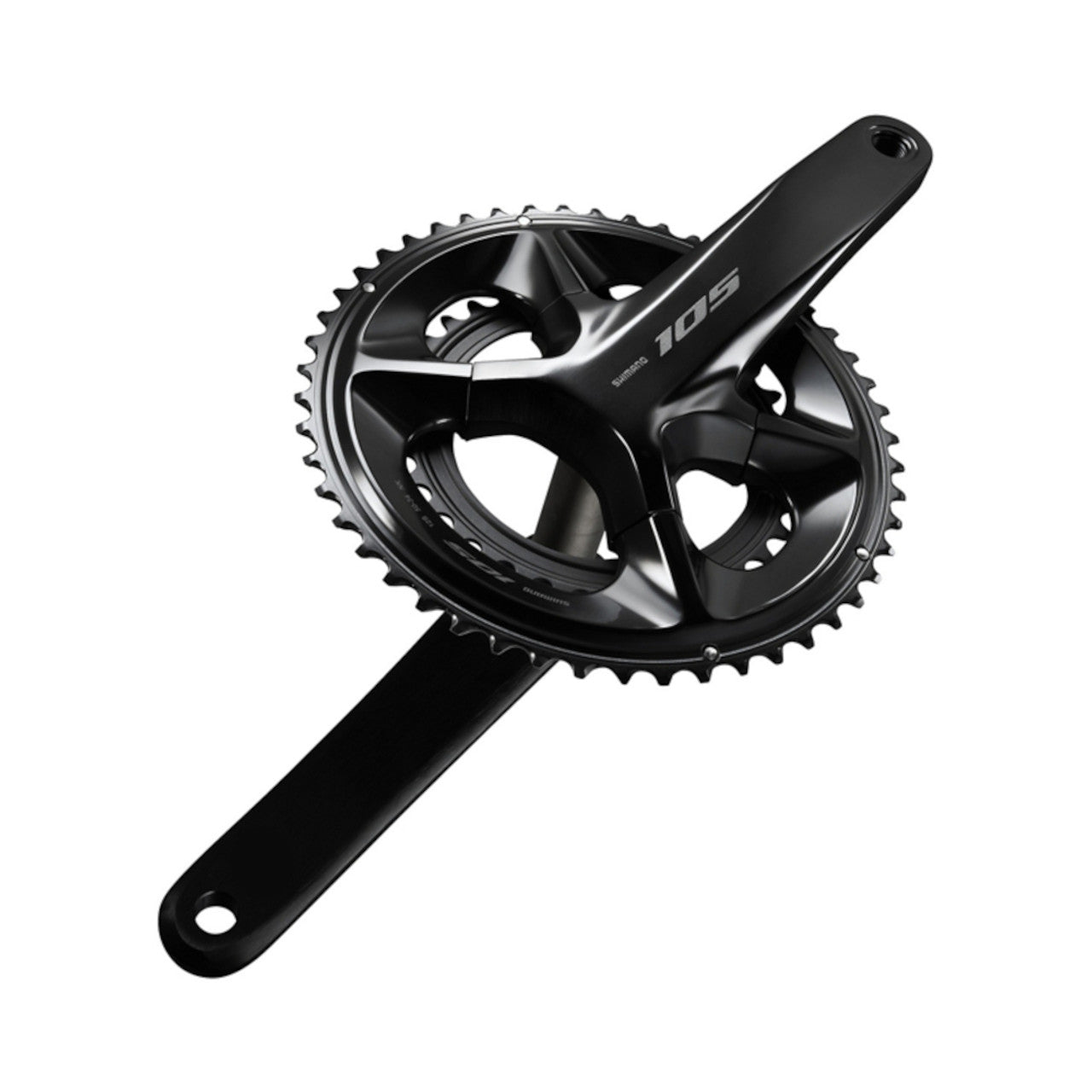 Quality Shifting, Lightweight DesignAs the central element of the 12-speed drivetrain of the 105 R7100 series, the FC-R7100 crankset is characterised by the shifting quality and transmission efficiency typical of Shimano. Not only the chainrings which feature a Hollowglide construction, but also the lightweight crank arms which are manufactured using Hollowtech II technology, contribute to optimised power transmission as well as faster and more precise shifting operations.All this adds up to a perfect balance between stiffness, stability, lightweight, and rotational efficiency.Hollowtech IIThe guiding principle of Shimano's Hollowtech II technology is the perfect balance between stiffness, stability, weight, and rotational efficiency. The goal was to produce a crank that minimises the effort required for the drive and enables more efficient power transmission.An exclusive forging process allows the production of extremely light crank arms that nevertheless guarantee maximum stiffness. The fixed connection of the right arm to the axle of the bottom bracket and its external bearing also serves an optimum relationship between stiffness and low weight.. Shifting System: 12-speed. Bottom Bracket Axle Profile: 24mm Hollow Shaft. Road - Bolt Circle Diameter: 110mm. Chainring Mount: 2-speed. Crank length: 172.5mm. Chain Line: 44.5mm. Q-Factor: 148mm. Colour: Black Material. Crank arms, inner chainring: aluminium (anodised). Outer chainring: aluminium (anodized). Carbon fibre reinforced polymer (CFRP). Axle: steel (plated)