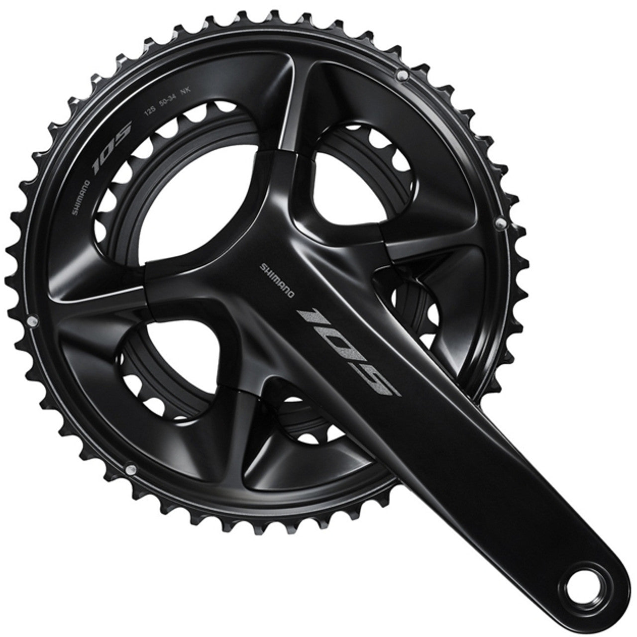 An attractive aluminum crank with hollow arms for lightweight, rigidity, and durabilityThe newly designed crank arms offer an optimized balance between lightweight and efficiency. The crank, formed with hollow aluminum technology, is anodized with a beautiful gloss black anodized finish, giving it a luxurious look. The resin ribs on the back of the chainrings are SHIMANO 105's unique structural design that achieves both thorough weight reduction and crisp shifting performance.. Optimal balance of stiffness, strength, weight and rotational performance