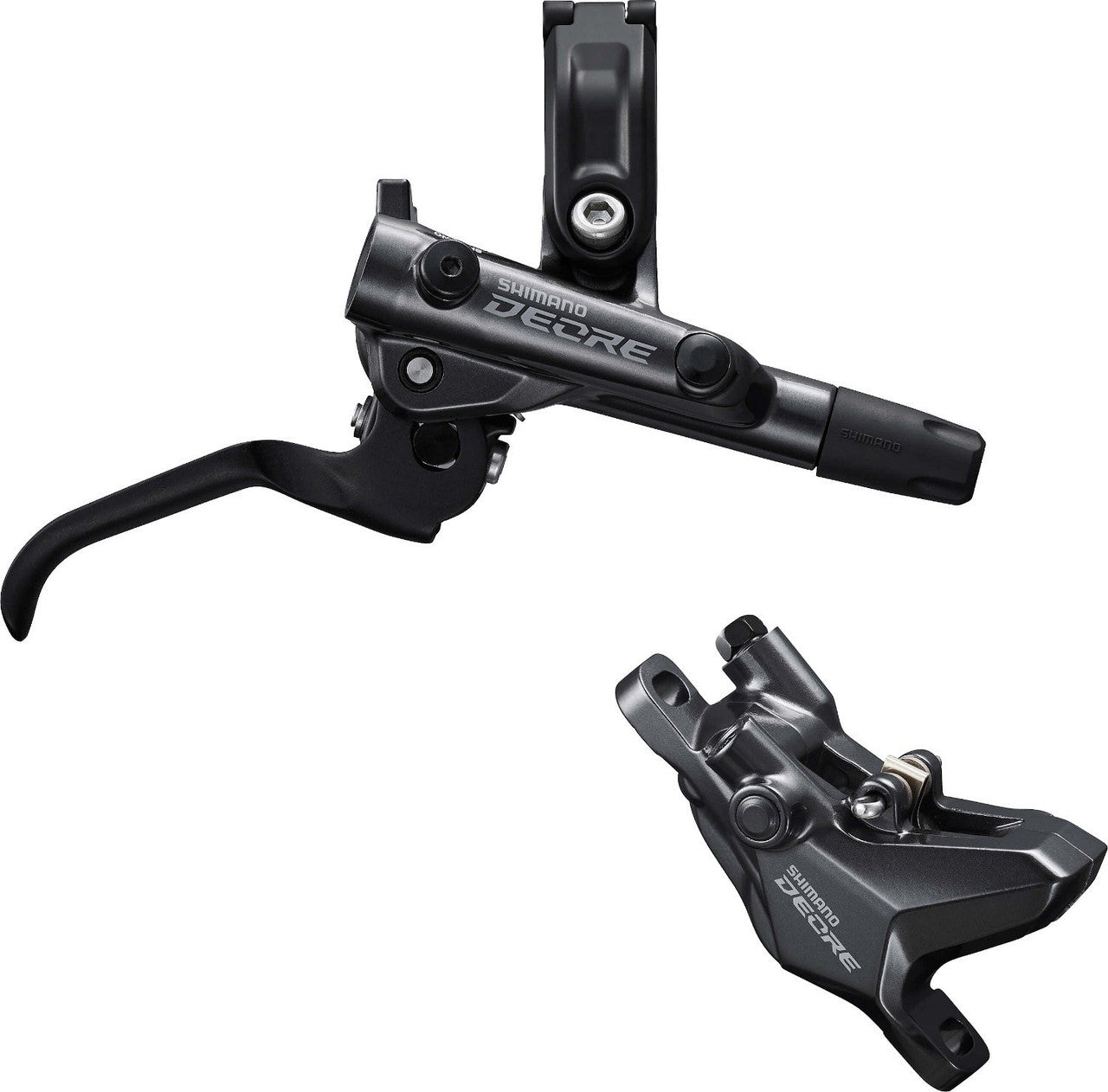 With quicker brake engagement and shorter free stroke, the Shimano Deore BL-M6100 brake lever delivers intuitive braking so you can stay focused on the trail ahead. The I-SPEC EV shift lever, with 10 deg. rotation angle setting range, offers a wider adjustment range for superior rider tuning. The redesigned 2-piston brake lever results in a stiffer mount for better feedback and more power. The brake lever is equipped with Shimano's proven Servo Wave technology which results in quicker pad/rotor engagement, improved power, and a shorter free stroke. The Deore BR-M6100 caliper features lightweight braking performance and reliable stopping power in all conditions. It is a lightweight, 2-piston disc brake caliper with quick piston retraction, and its superior modulation gives you the power you need at low weight.