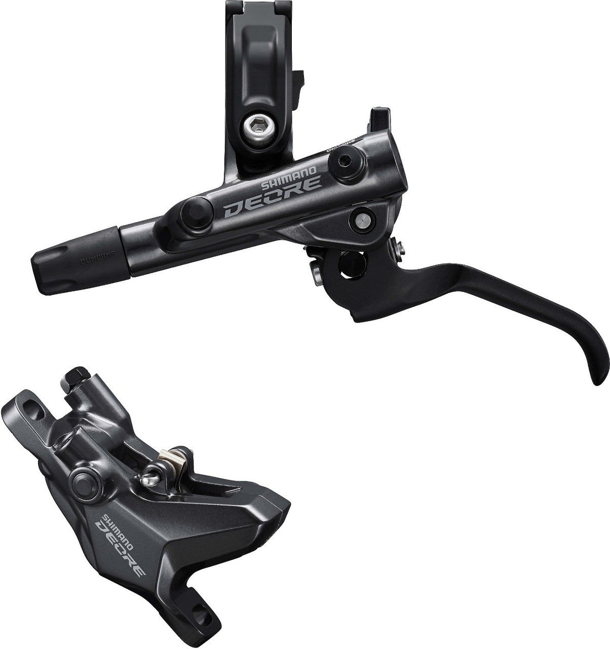 With quicker brake engagement and shorter free stroke, the Shimano Deore BL-M6100 brake lever delivers intuitive braking so you can stay focused on the trail ahead. The I-SPEC EV shift lever, with 10 deg. rotation angle setting range, offers a wider adjustment range for superior rider tuning. The redesigned 2-piston brake lever results in a stiffer mount for better feedback and more power. The brake lever is equipped with Shimano's proven Servo Wave technology which results in quicker pad/rotor engagement, improved power, and a shorter free stroke. The Deore BR-M6100 caliper features lightweight braking performance and reliable stopping power in all conditions. It is a lightweight, 2-piston disc brake caliper with quick piston retraction, and its superior modulation gives you the power you need at low weight.