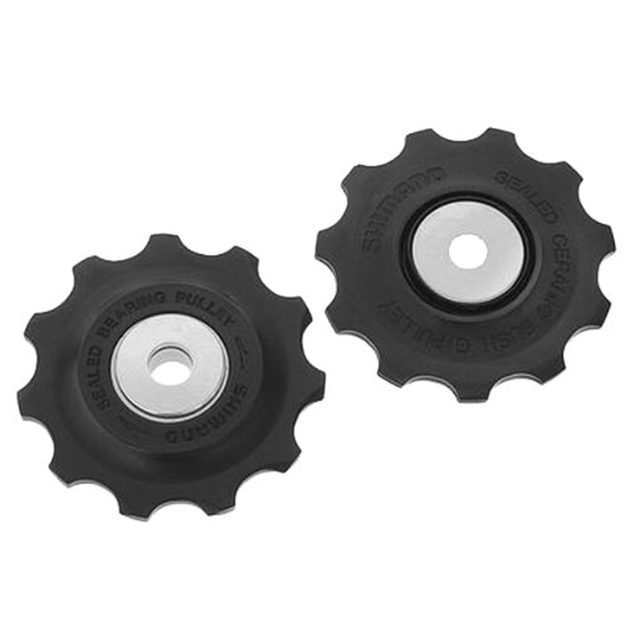 Upper (guide) and lower (tension) pulleys for Shimano rear derailleurs.