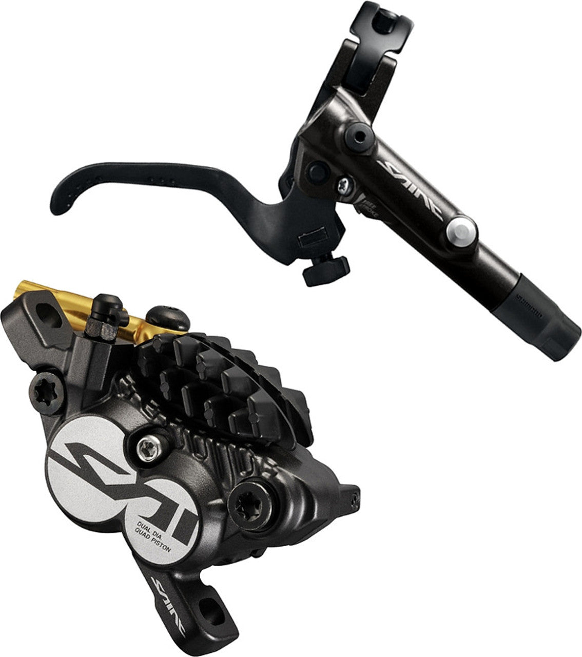 The world's best gravity riders rely on SHIMANO SAINT brakes to deliver ultimate stopping power and nuanced modulation no matter the conditions. For sure braking in the roughest terrain, the BL-M820 levers are textured and feature tool-free reach adjust, Free Stroke adjustment, and I-spec B compatibility.