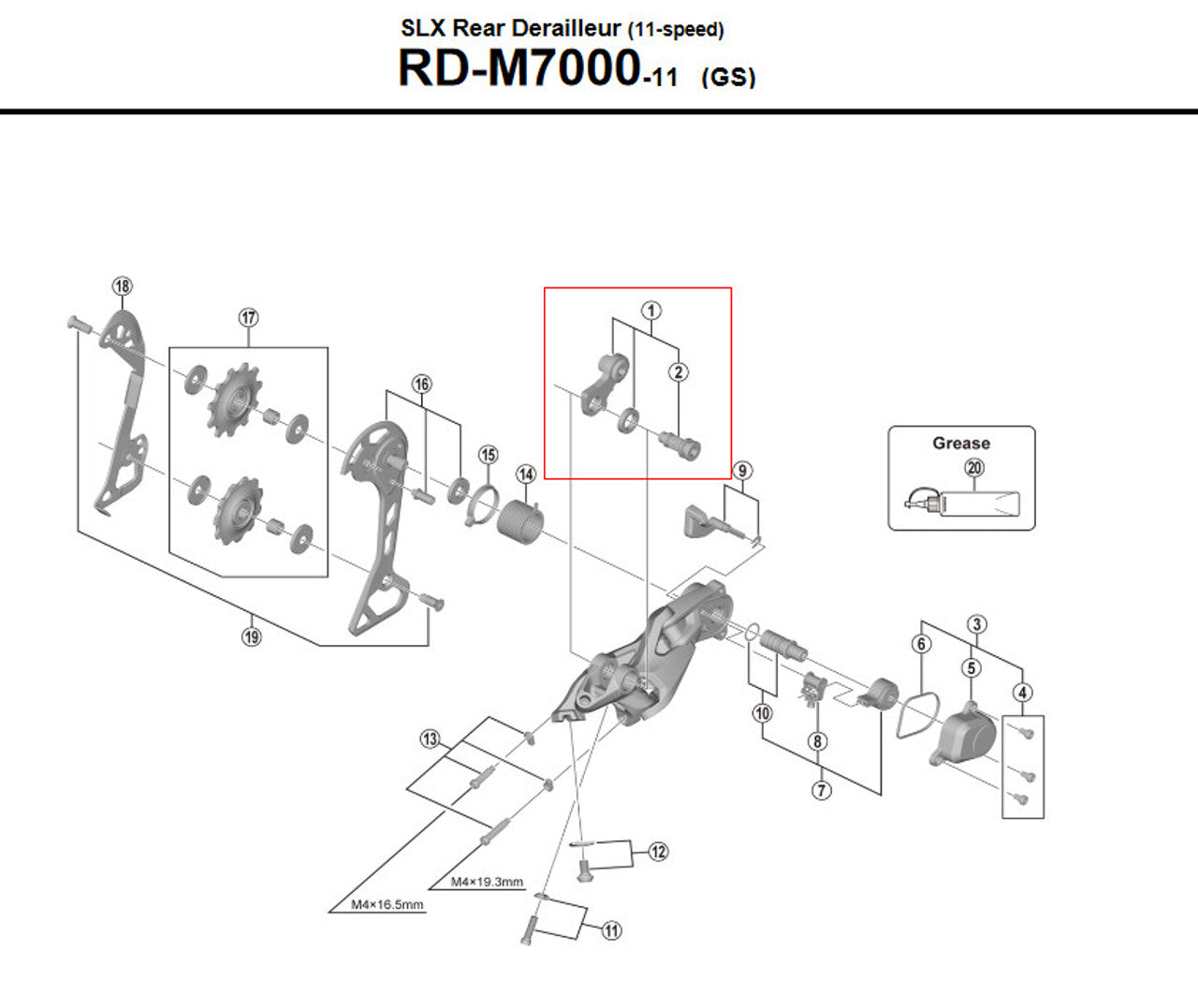 Replacement bracket axle unit for Shimano SLX RD-M7000 rear derailleur.. Suits Shimano SLX RD-M7000 rear derailleur