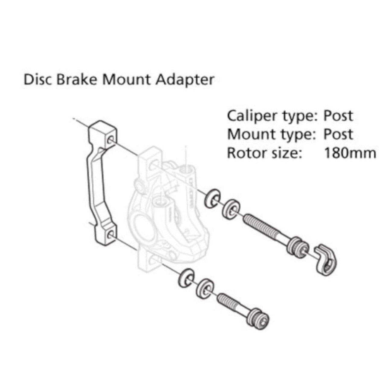 This kit allows you to convert 160mm (Rotor) post mount brakes to 180mm (Rotor) post mount brakes.. Suits most 180mm Rotors