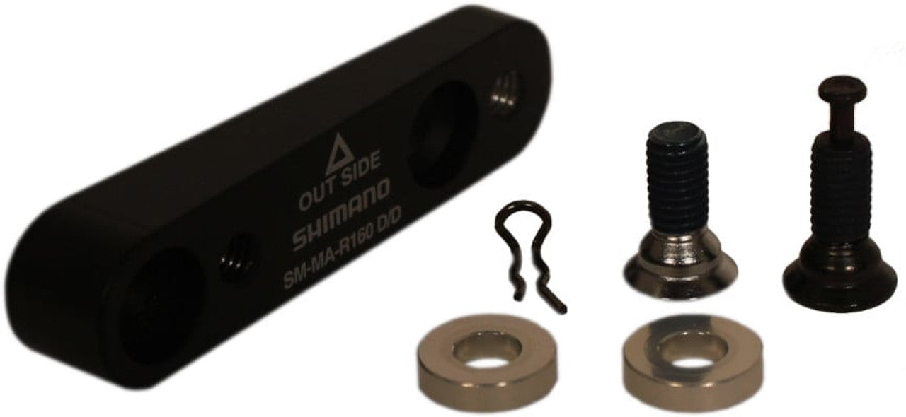 Shimano rear adapter to enable 160mm disc brake rotor to be used with frames designed for 140mm rotor.. Shimano SM-MA-R160-DD 160mm Flat Mount Rear Disc Brake Adaptor