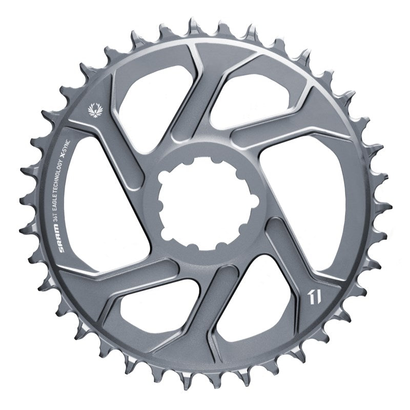 SRAM Chain Ring X-SYNC 2 SL 36T Direct Mount 3mm Offset Boost Eagle Lunar GreyEagle Technology creates the smoothest, quietest, longest lasting and most efficient drivetrains we've ever made. The radical new look and feel of our X-SYNC 2 Eagle chainring is a direct result of SRAM drivetrain engineers studying the performance and wear characteristics of thousands of X-SYNC chainrings. The longer, positive-rake tooth shape has been designed to work perfectly with the new Eagle chain to increase chain retention and overall pedaling efficiency, while decreasing friction, noise and wear.X-SYNC 2 chainring design increases chain retention, wear life, and reduces friction and noise.
