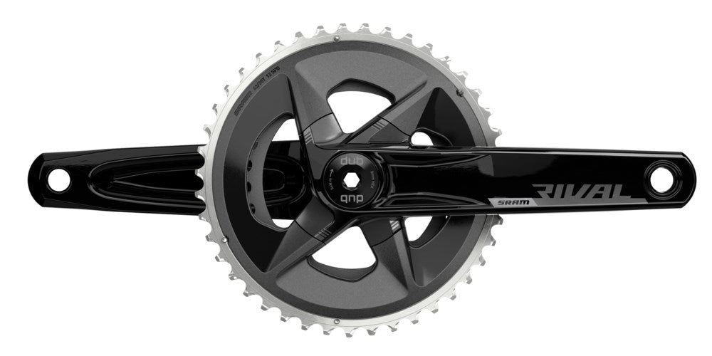 SRAM Crankset Rival D1 DUB WIDE 170 43-30 (BB not included)The wider stance of the arms and chainrings provides clearance for extra wide tires, giving you the option to explore new, more challenging routes.Wide chainline crankset for bikes with up to 700x45c or 27.5x2.1” tire widths (43/30T chainrings only)