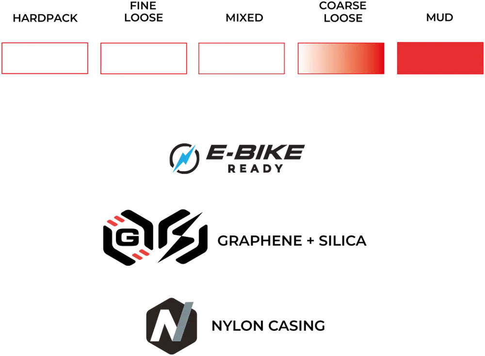 Race Formulation: Graphene + Silica ensures speed and grip without compromise, combined with a 60 TPI Nylon casing for reduced rider fatigue and enhanced reliability.