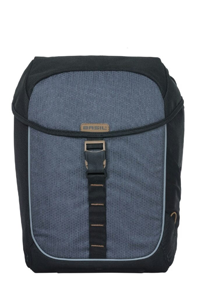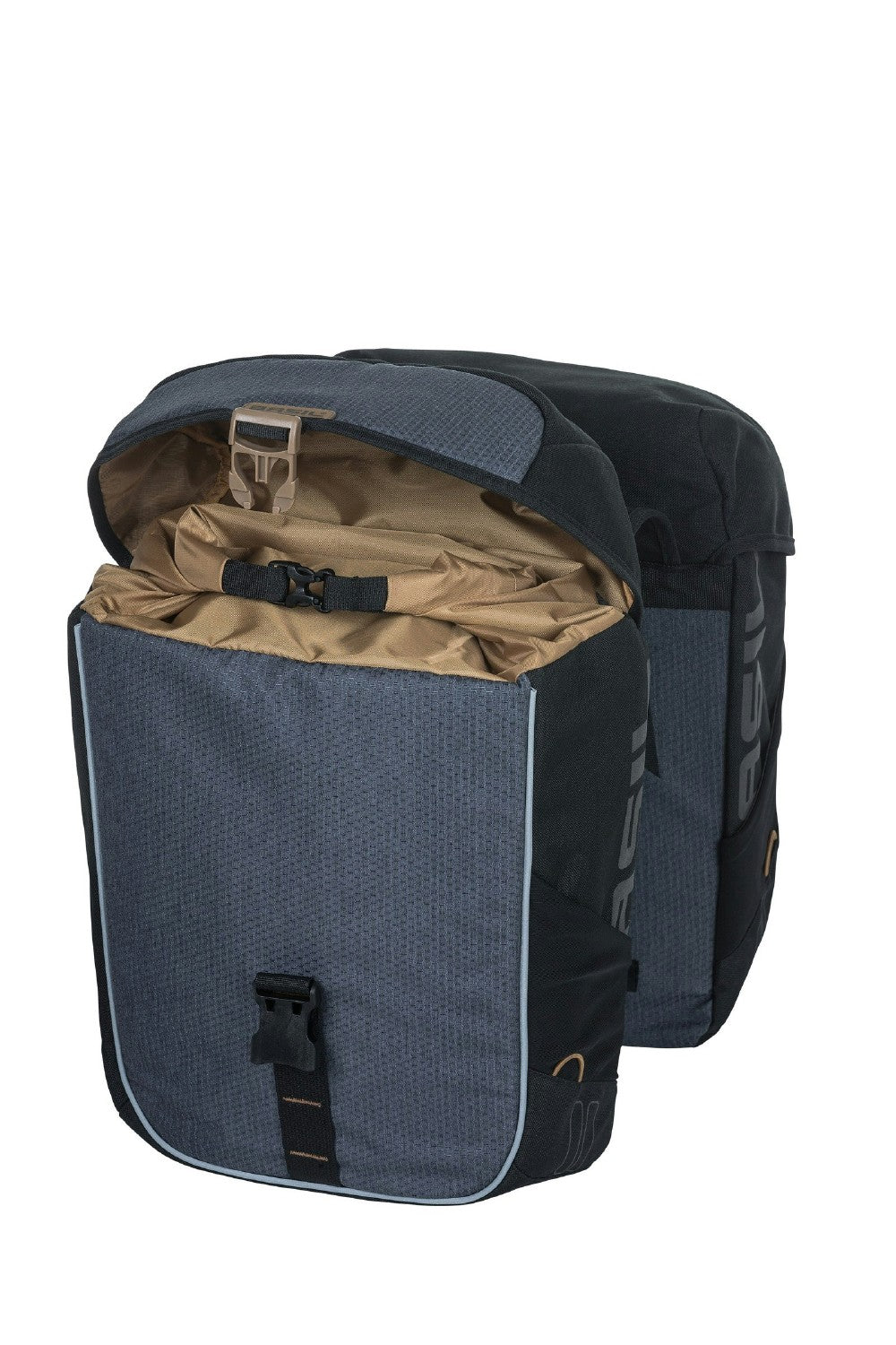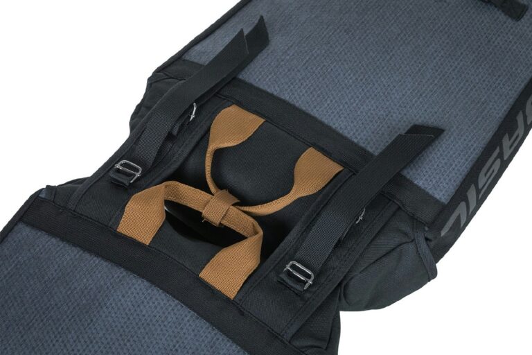 Imbued with a waterproof design and a capacious 34-litre volume, the Basil Miles Double Bag serves as an indispensable companion for cycling adventures. Presented in an elegant blend of dark gray and charcoal gray hues, this pannier seamlessly incorporates the Basil Universal Bridge System, ensuring effortless attachment to various luggage carriers, including e-bikes. The bag’s functional prowess is further accentuated by reflective elements, enhancing visibility during nocturnal rides, and it even accommodates the addition of LED lighting.
