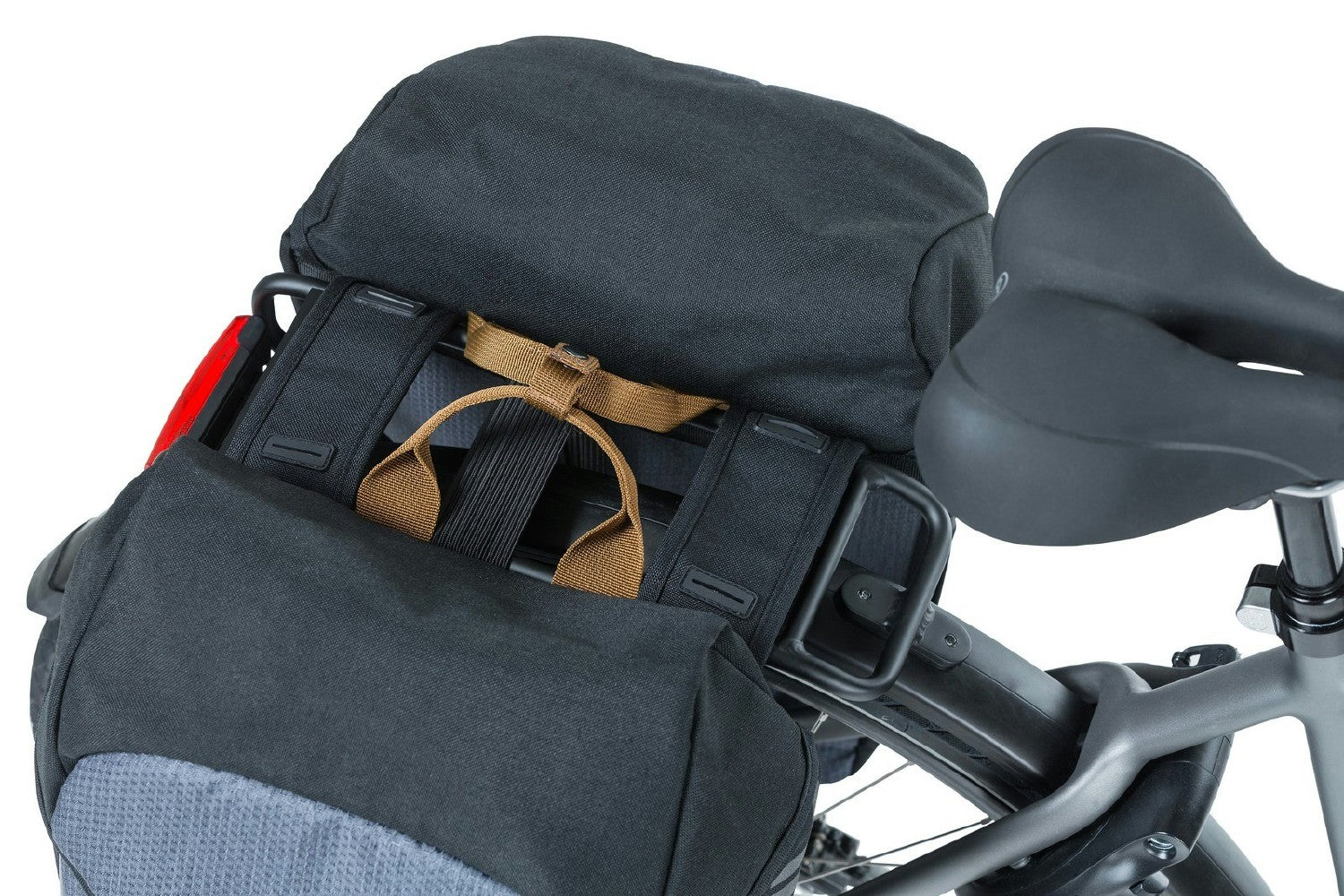 With a generous capacity of 34 litres, the Basil Miles Double Bag stands out as a remarkable waterproof pannier. Whether you’re embarking on a grocery shopping expedition or planning a bike trip through the scenic Ardennes, this bag is designed to enhance the convenience and enjoyment of your cycling experience. Its sleek dark gray / anthracite shade, complemented by tasteful brown accents, lends the bag a distinct sense of style. Even during rainy rides, the waterproof material guarantees that your bag’s contents remain dry. The bag effortlessly attaches to your luggage carrier, including e-bikes, thanks to the Basil Universal Bridge System. It’s also compatible with systems like Racktime, Carry More, and i-Rack. Notably, reflective details have been incorporated to enhance your visibility during nighttime rides, and there’s even provision for mounting LED lighting. The bag secures its contents with a combination of a roll closure and snap closure, while boasting a sturdy inner lining. It’s worth noting that this Basil Miles Double Bag is part of the broader Basil Miles collection. If you’re seeking a single pannier from this line, your search ends here.