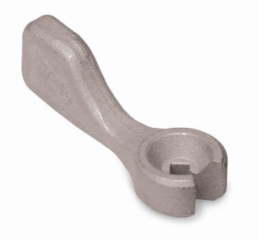 Metal spoke key which precisely holds the nipple by three corners to avoid slipping and rounding when tightening/undoing high tension spokes.