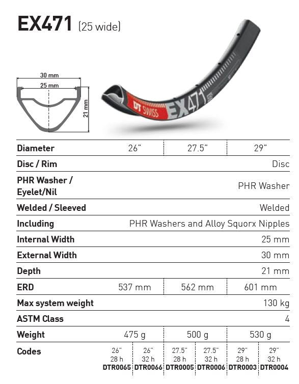 DT Swiss Rim EX471 27.5 28h 25 Wide