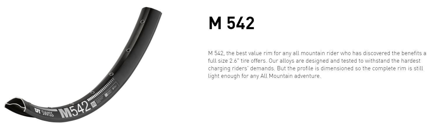 M 542, the best value rim for any all mountain rider who has discovered the benefits a full size 2.6" tire offers. Our alloys are designed and tested to withstand the hardest charging riders' demands. But the profile is dimensioned so the complete rim is still light enough for any All Mountain adventure.