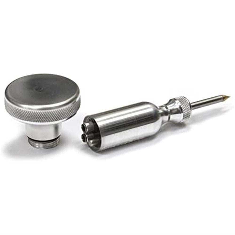The Pro XTREME is the most versatile edition with an ergonomic design that facilitates repairing a full range of punctures and especially those in the most heavy-duty treads up to 1-1/8” thick. The substantial end cap has a broad flat surface that can even be tapped with a hammer to assist plug insertion. It has five machined compartments that store extra insertion tubes, air stopper and clearing tool. The Xtreme end cap threads are compatible with the Pro tool making the end caps are interchangeable. Available in 6061 aluminum or 303 stainless steel.