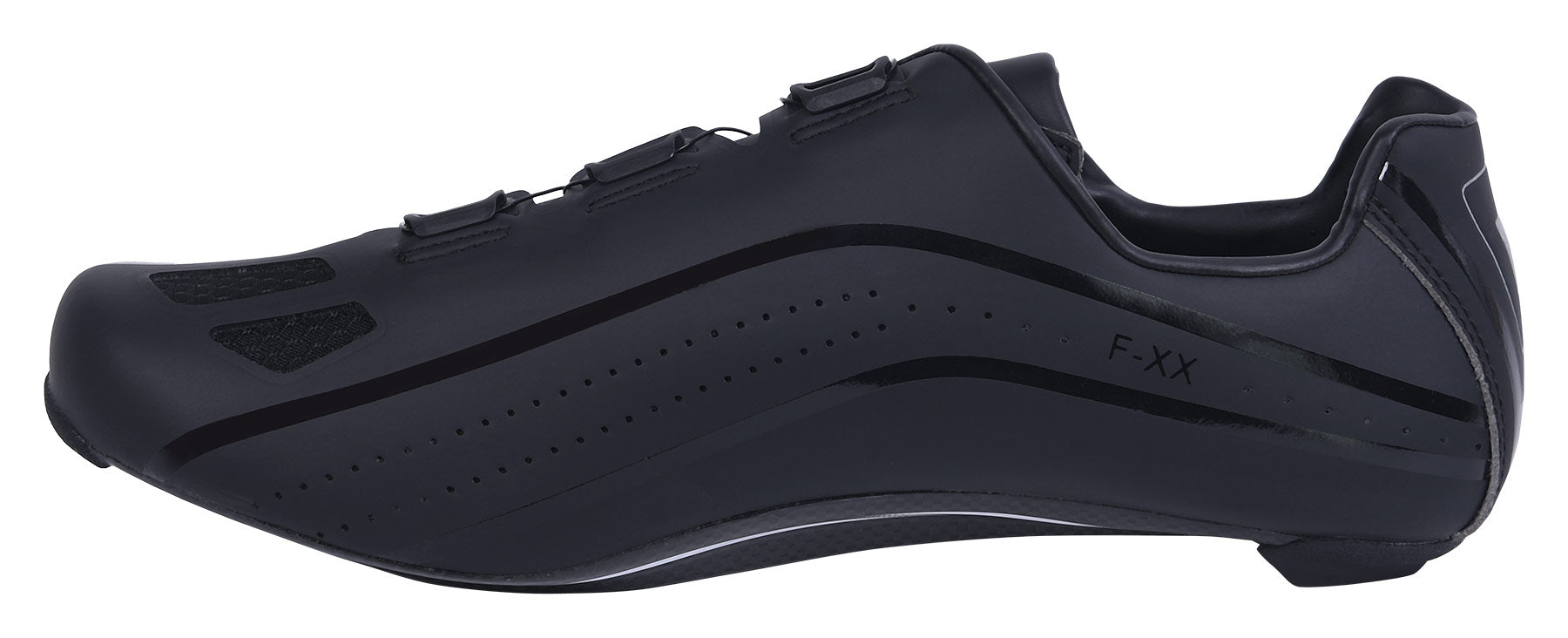 The updated F-XX II sports a sleeker profile, features the elite R500 stiff carbon fiber outsole for maximum power transfer and a sculpted footbed with a supportive heel that aids to increase blood flow, reduce hot spots and ensure that every power watt goes directly into your pedal for maximum performance output.