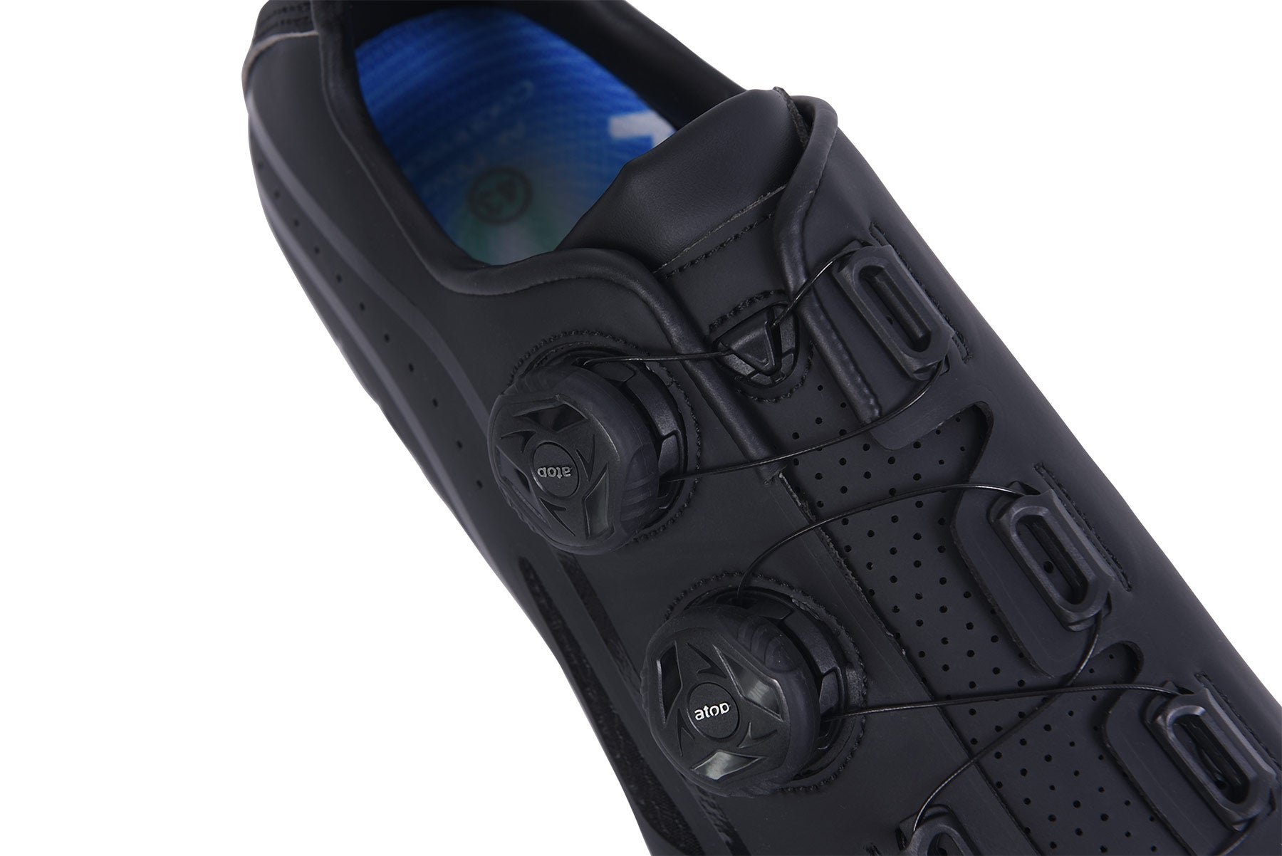 The seamless upper is formed from a single piece of lightweight microfiber, with 6 air mesh inserts across the toe box and side panels to create an even airflow around the shoe and provide excellent ventilation for the entire foot. Two independent Atop dials optimise closure in each of the critical foot zones.