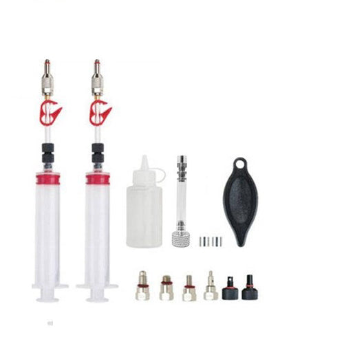 Includes syringes and universal adapters with squeeze valves. Compatible with most mineral oil fluid hydraulic disc brakes from Shimano®, Magura®, Tektro®, TRP®, and Hayes® Red seals provide easy identification for use with mineral oil fluid systems only.
