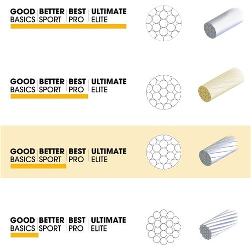 An upgrade from basic cables, these stainless steel strands are pre-stretched and extruded through a die that removes any rough edges. The result is a smooth surface that reduces friction along the length of the cable. These cables are the most popular choice for riders balancing performance, durability and cost. Stainless steel option offers greater resistance to corrosion.