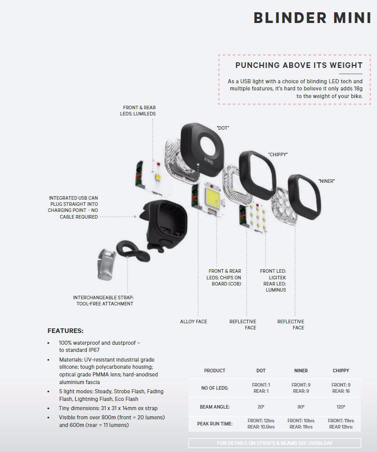 Visible from over 800m (front = 20 lumens) and 600m (rear = 11 lumens)