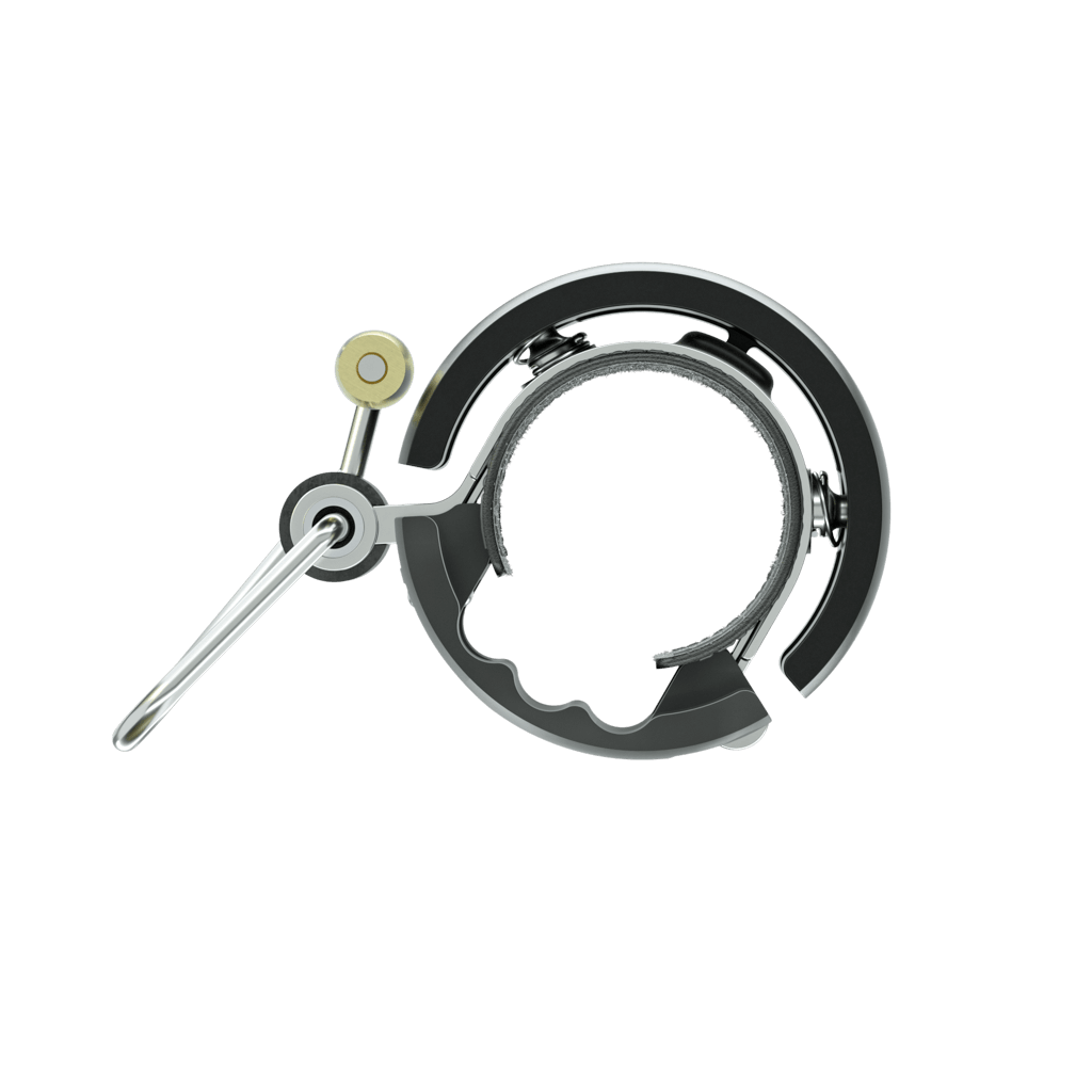 Bells usually protrude up or out, Oi doesn’t. It wraps around the handle bars. Discreet but stylish.