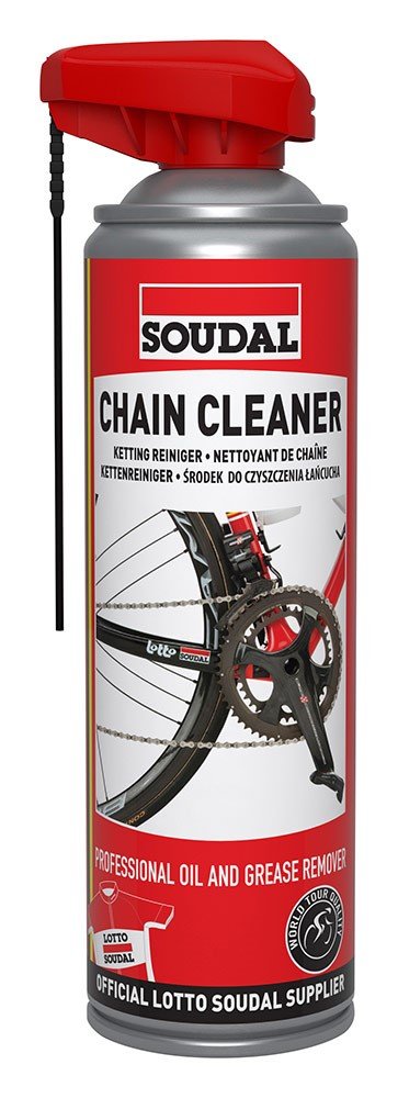 After spraying cleaner on the soiled chain, allow the product some time to work. A brush can be used to rub the product into the gaps in the chain. Thoroughly hose off the chain and derailleurs with plenty of water. Make sure you always re-think the chain and gear drive with Soudal Dry, Wet weather or All weather lubricant.