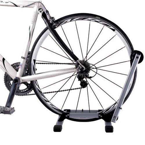 Tubular folding stand designed for storing and displaying bicycles. Spring-loaded stabilizer arm holds the tyre securely. Holds front or rear wheel firmly and without scratching the surface of bike frame. Wheel slot fits all types of bikes, such as road bike, MTB, BMX, Cross, especially E-bike and heavy bikes.
