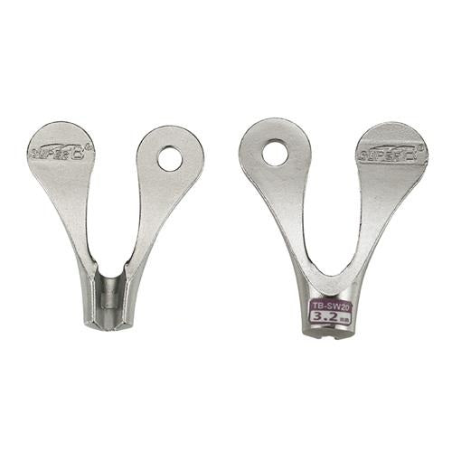 Unique design spoke wrench for master mechanics. Cast poured from heat-treated high grade steel for hardness and durability.