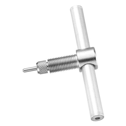 High quality chain tool with replaceable plunger pin for single and multi-speed chains up to 12 speed, including Campagnolo® 12 speed hollow pin chains. Included chain hook holds links during assembly. Storage space for the included chain hook and one spare plunger pin.